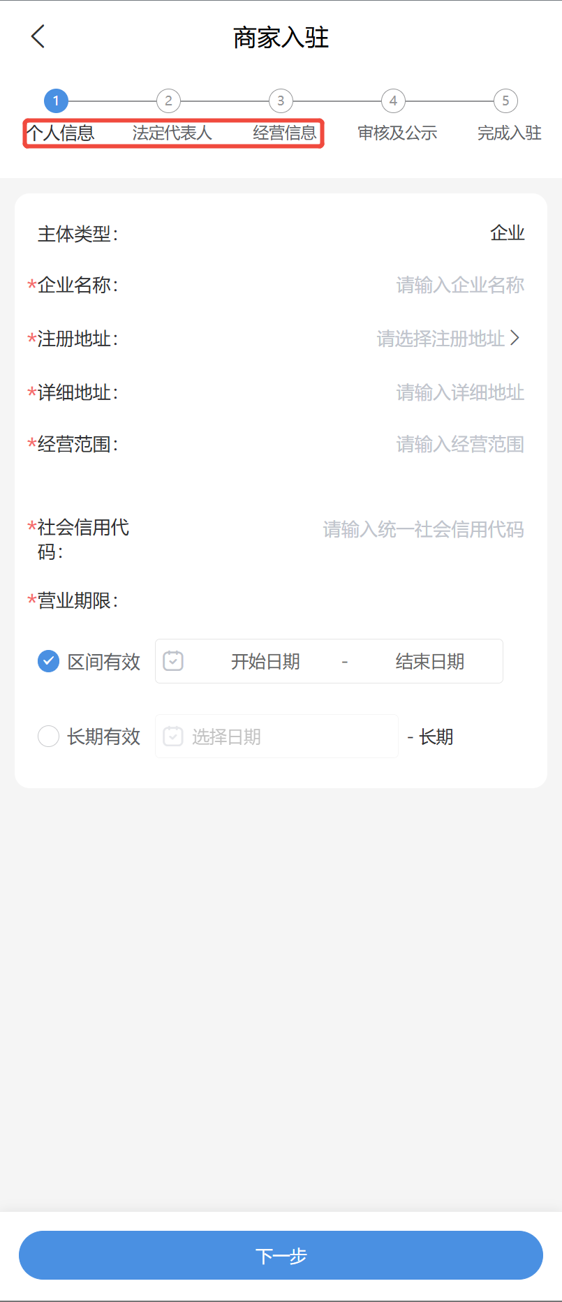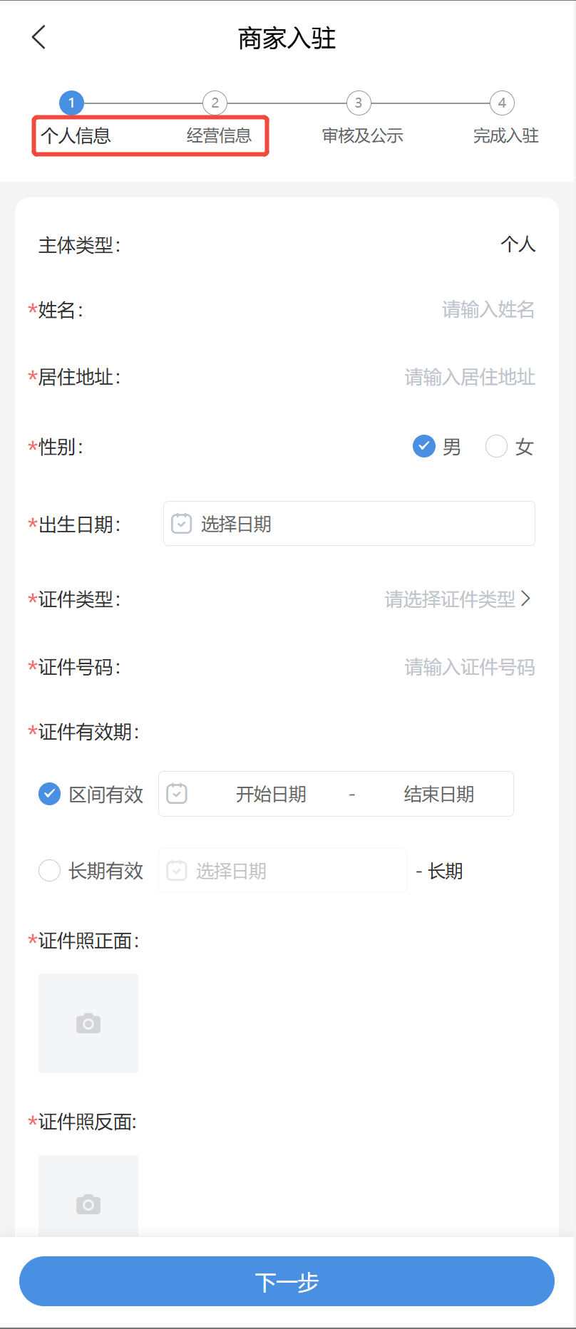 根据入驻类型填写个人或企业资料确认即可完成入驻