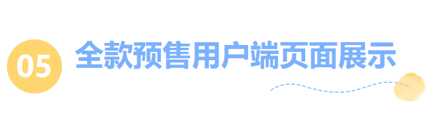 - 定金预售商品点击立即购买后有尾款和发货时间提示,并且只需要付定金金额,在付尾款时间时才需要付剩下的金额(预售商品,定金不退)