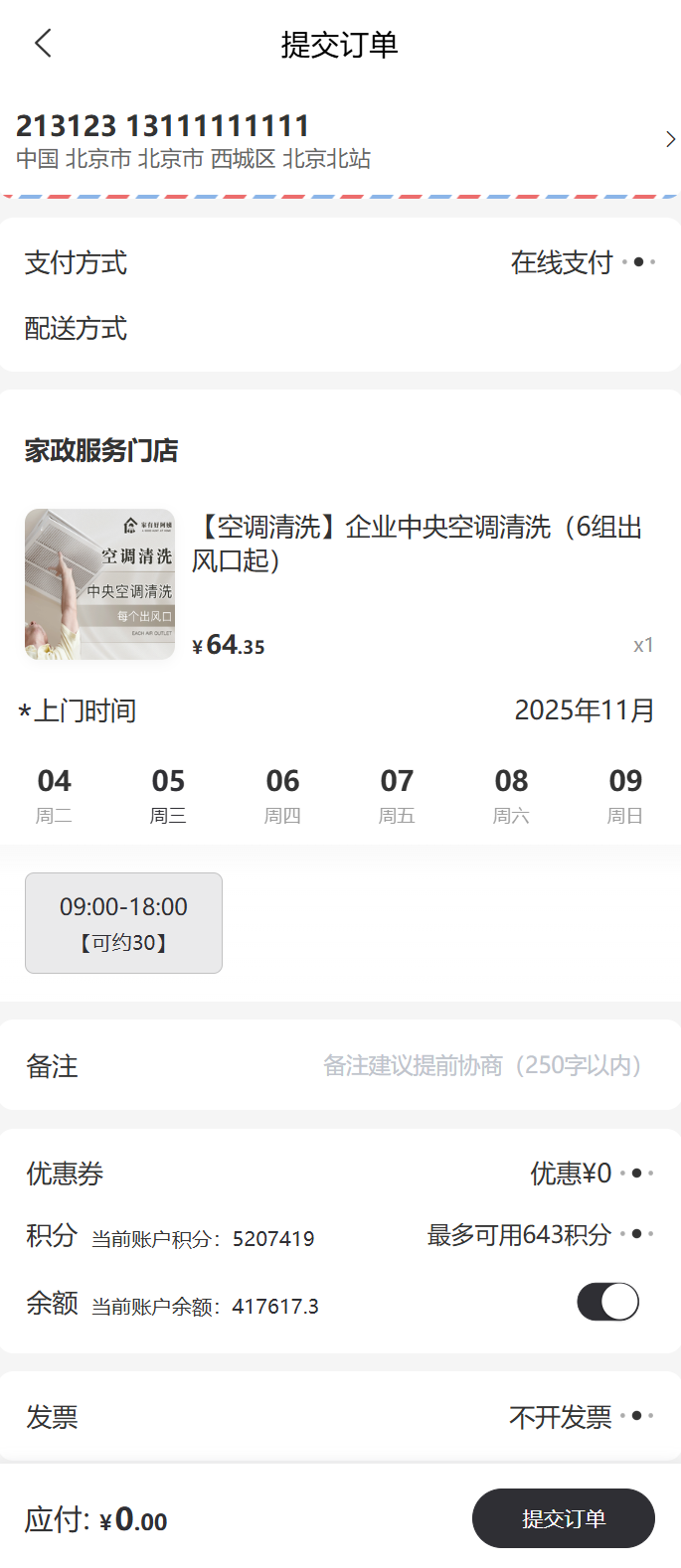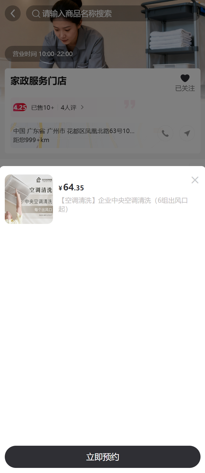 对用户而言,可直接预约上门服务(如家电安装、家居保养、宠物洗护),无需额外联系第三方,且能实时查看服务进度;对商家而言,借助订单的用户画像、订单数据,可精准匹配服务资源,减少空跑成本,同时通过服务 + 商品的绑定销售提升客单价,最终实现线上获客 - 上门服务 - 复购留存的长效运营,适用于家电、家居、生鲜、个护、家政等多品类业务。